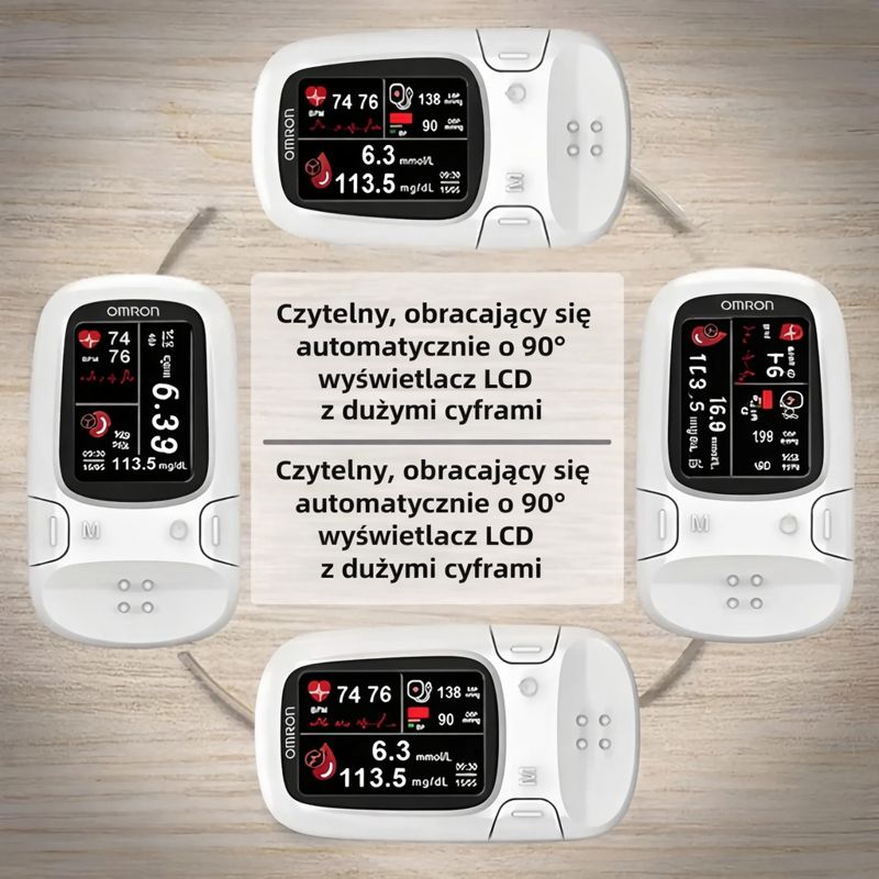 Firma Omron™ poświęciła pięć lat na opracowanie tego nieinwazyjnego, wielofunkcyjnego glukometru, aby pomóc większej liczbie osób w zapobieganiu cukrzycy.